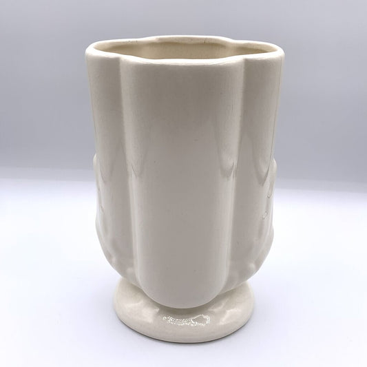 Vintage Ivory USA Pottery Vase with Acanthus Leaf Details /hgo