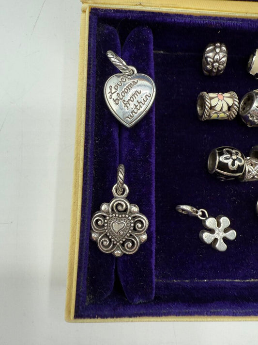 Brighton Jewelry Lot of Flower Theme 20 Beads 6 Charms /ro