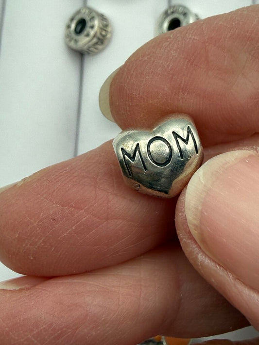 Pandora Sterling Silver set of 3 Mother/Mom/Heart Charms /ro