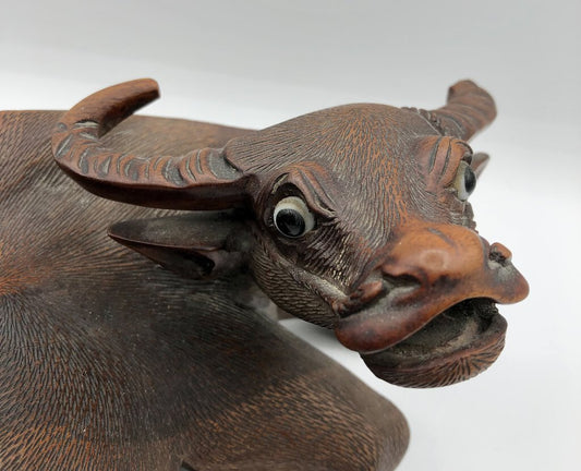 Vtg Chinese Hand Carved Wood Boy Riding Ox/ Water Buffalo /b