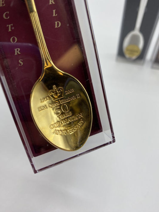 Souvenir Collectors World Spoons England Queen Elizabeth 50th Anniversary Lot of 3 /ro