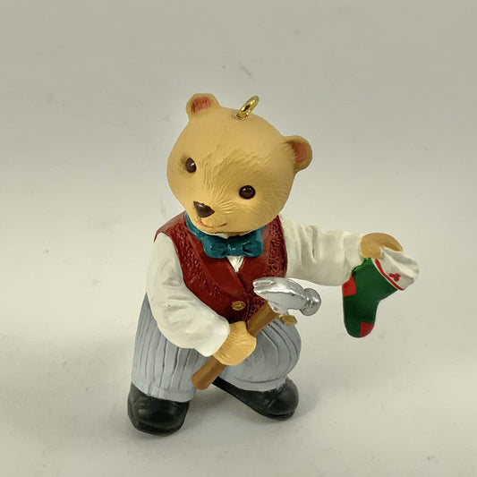 1993 Hallmark Keepsake Ornament Set The Bearingers Bear Family And Fireplace Display /cb