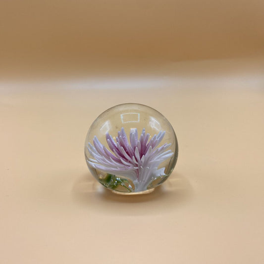 1950s Pink Waterlily Flower Glass Paperweight - Not Signed /bh
