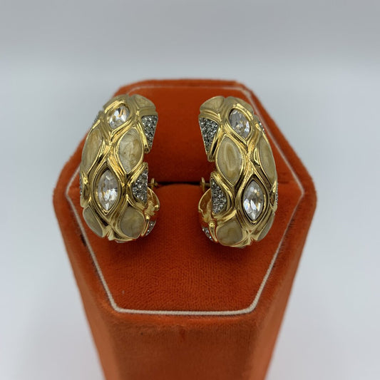 Swarovski Pavé Rhinestone and Enamel Clip-On Earrings /hg