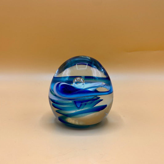 Vintage Hand Blown Blue and White Swirled Glass Paperweight - Not Signed /bh