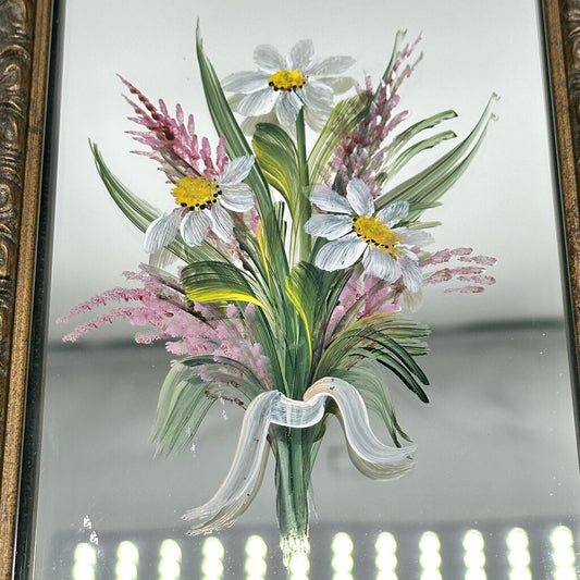 Vintage Hand Painted Decorative Framed Mirror Floral Daisies /cb