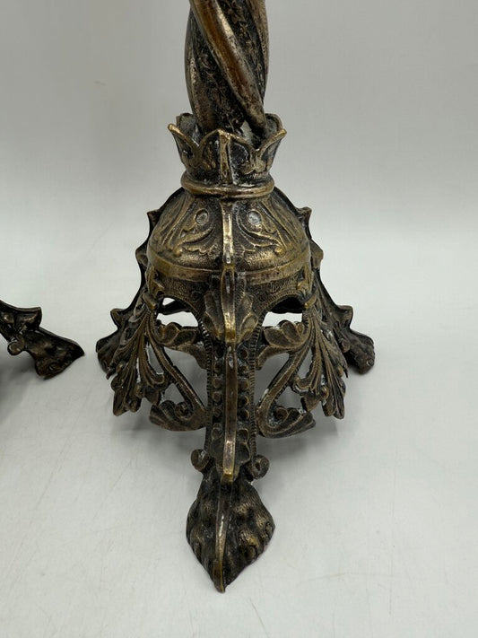 Antique Brass & Silver Plate Candlestick Holders 18” Tall /rw