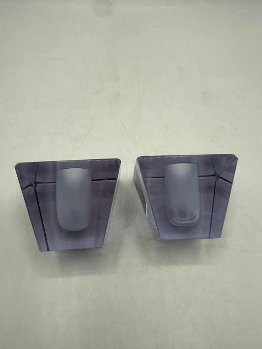 VTG Clear Crystal Obelisk Candlestick Holders MCM Art Deco Shape /ro