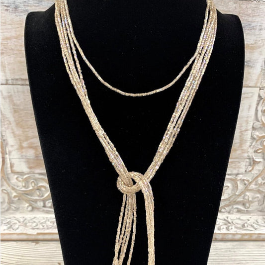 5 Strand Handmade Sparkling Glass and Crystal Lariat Necklace with Bonus Matching Stretchy Choker /cb
