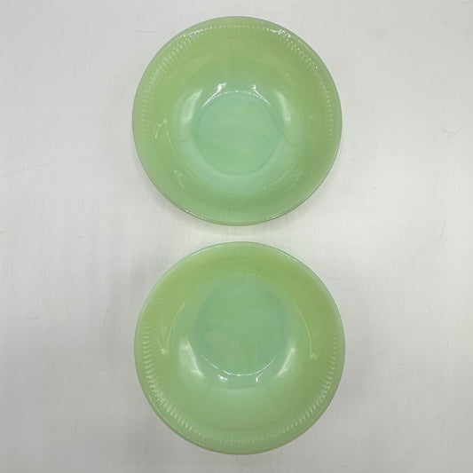 Vintage Set of 2 Anchor Hocking Fire King Oven Ware Jane Ray Jadeite 6” Cereal/Soup Bowls /cb