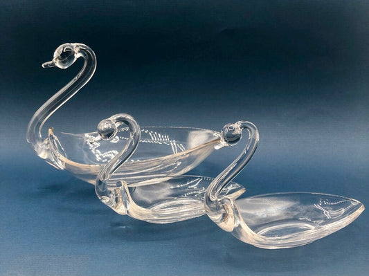 Set of 3 Duncan Miller Glass Nesting Swans Candy/ Trinket Dishes /b