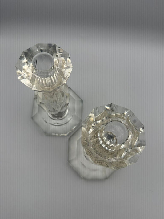 MCM Post House Faceted Pair of Crystal Candlestick Holders /roh