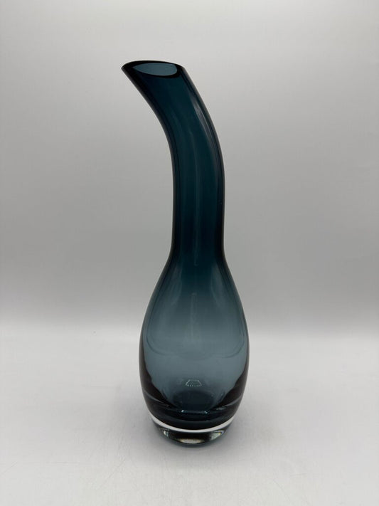 Blown Art Glass Goose Neck Vase Smokey Blue 11.5” /roh