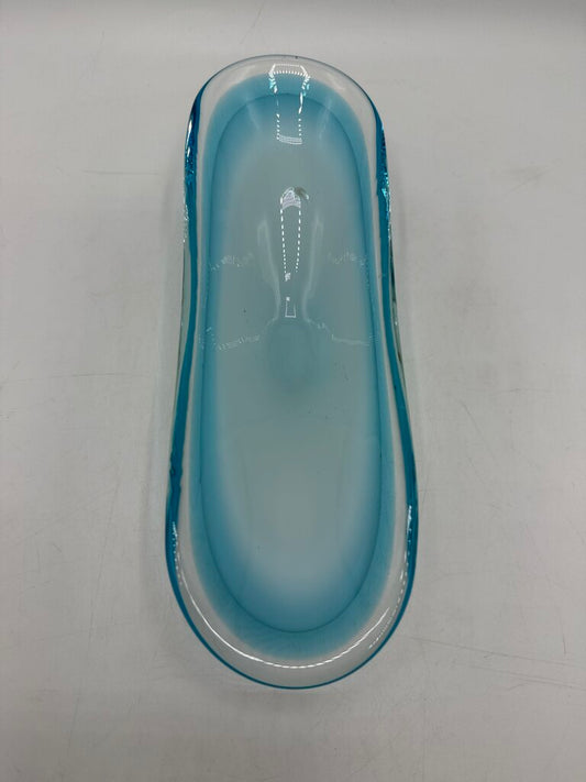 Vintage Murano Art Glass Dish Trinket Tray Blue /ro