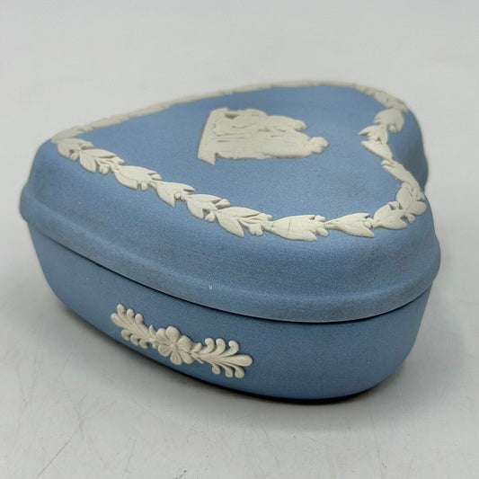 Vintage Heart Shaped Wedgwood Blue Jasperware Trinket Box /cb