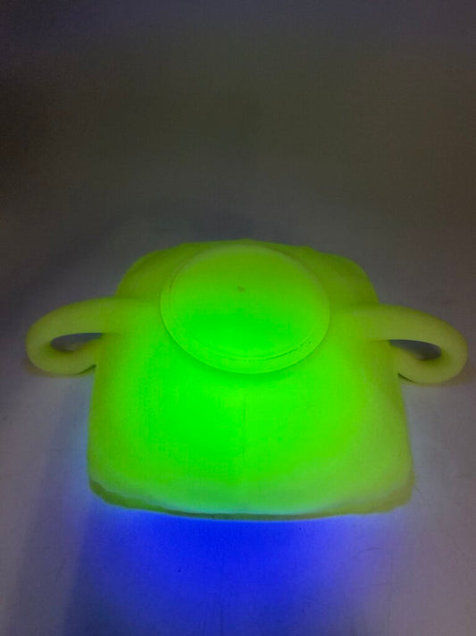 Fenton Custard Butterfly Uranium Glass Double Handle Dish /ro
