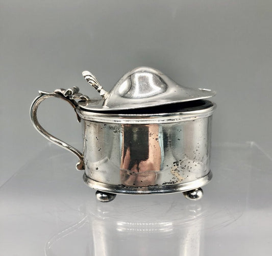 Antique Walker & Hall Birmingham Sterling Silver Mustard Pot w/ Cobalt Glass Insert /b