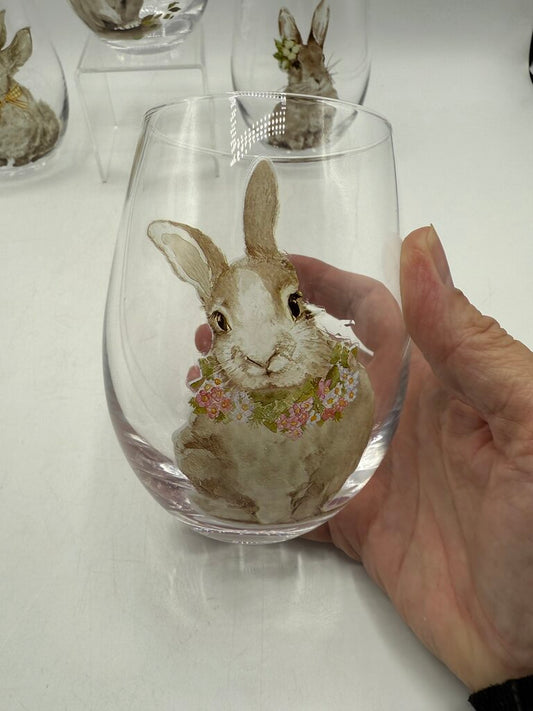 Set of 4 Pier 1 Stemless Bunny Glasses 18 Oz Capacity /rb
