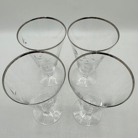 Set Of 4 Vintage Fostoria Bridal Belle Iced Tea Glasses Cut Leaves Platinum Trim Stem 6072 /cb