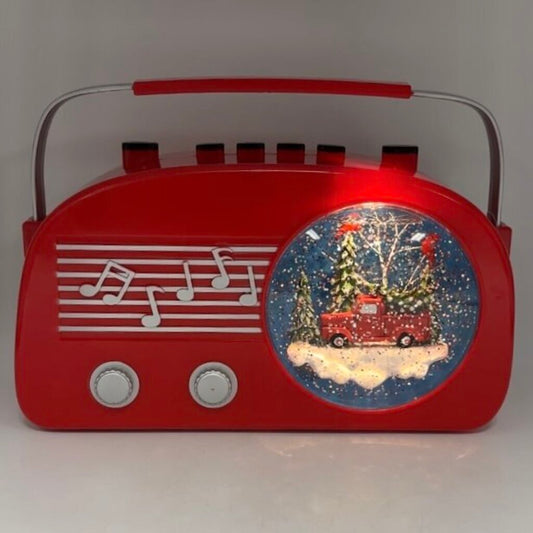 Gerson Illuminated Musical Red Retro Radio Christmas Snow Globe With Timer WORKS /cb
