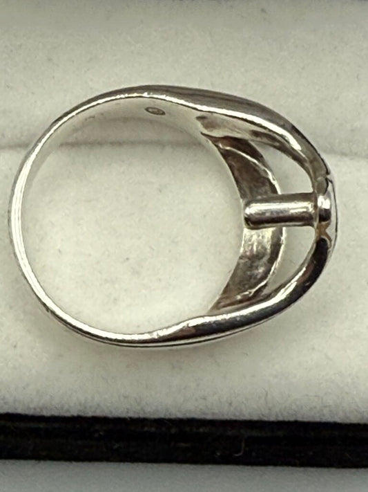 Sterling Silver Horizontal Mount Black & White Natural Stone Ring Size 10 /ro
