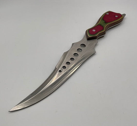 Unbranded Stainless Steel Knife - 16” Overall, 8 1/2” Blade, Multicolor Wood Handle w/Black Nylon Sheath /s
