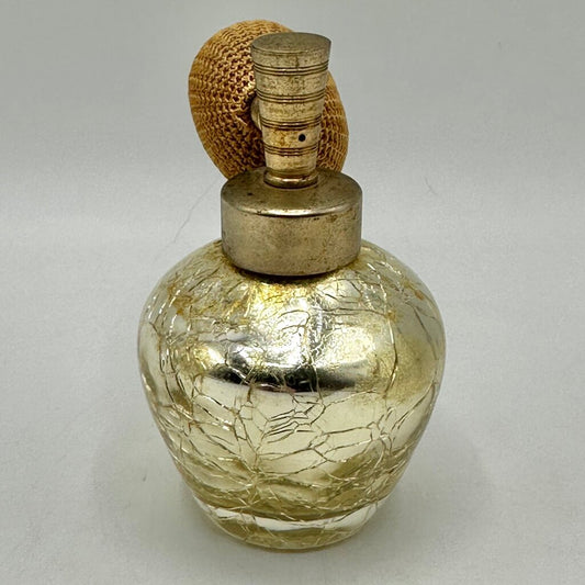 Vintage DeVilbiss Gold Crackle Glass Perfume Bottle Atomizer /cb