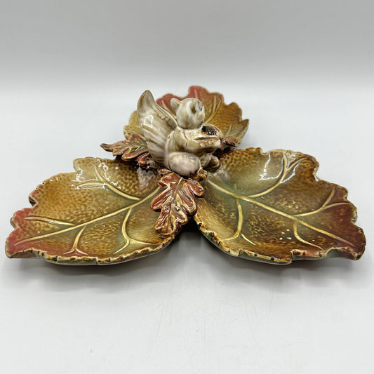 Vintage Kaldun & Bogle Ceramic Autumn Leaves w/Squirrel Divided Serving Dish /cb