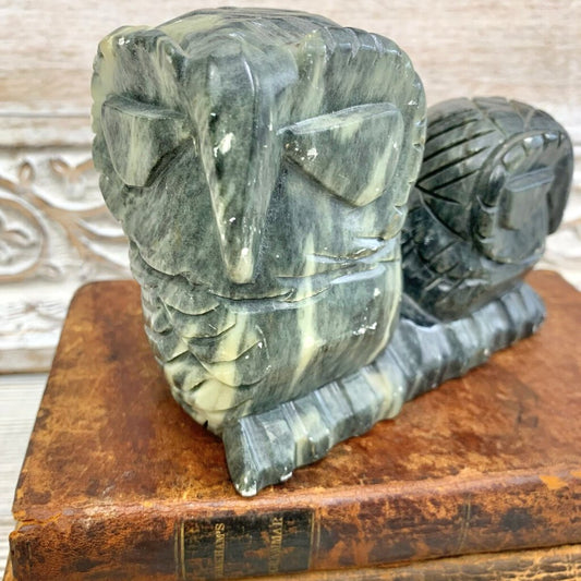 Vintage Carved Soapstone Pair of Owls Figurine /cb