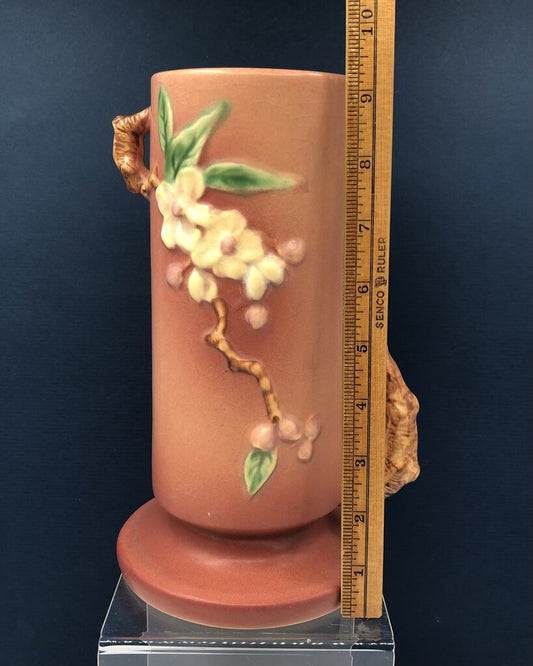 Vintage Roseville Pottery 9” Apple Blossom Vase #387 /b