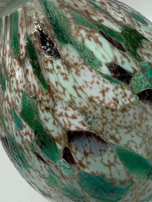 Colorful Green, White, Gold Blown Glass Oil Lamp Footed.