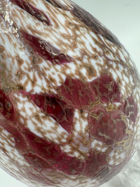 Colorful Red, White, Gold Blown Glass Oil Lamp Footed /rw