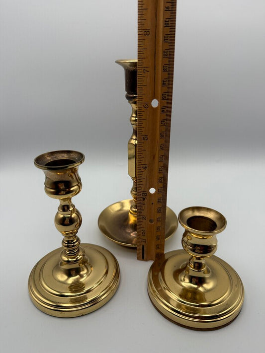 Vintage set of 3 Baldwin Brass Candlestick Holders /ro