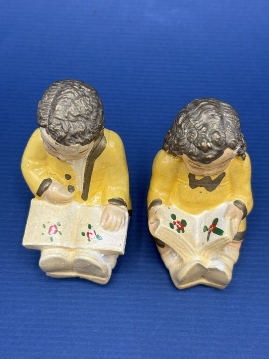 Vintage Chalkware Figurines Boy and Girl Reading Handpainted /ro