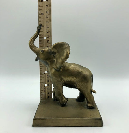 Brass Tone Spelter Metal Happy Elephant Book End /b