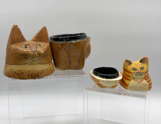 2 Handmade Paper Mache Cute Cat Containers /b