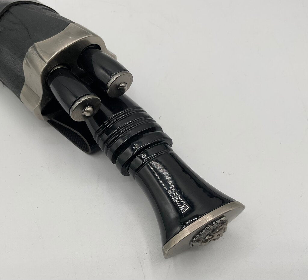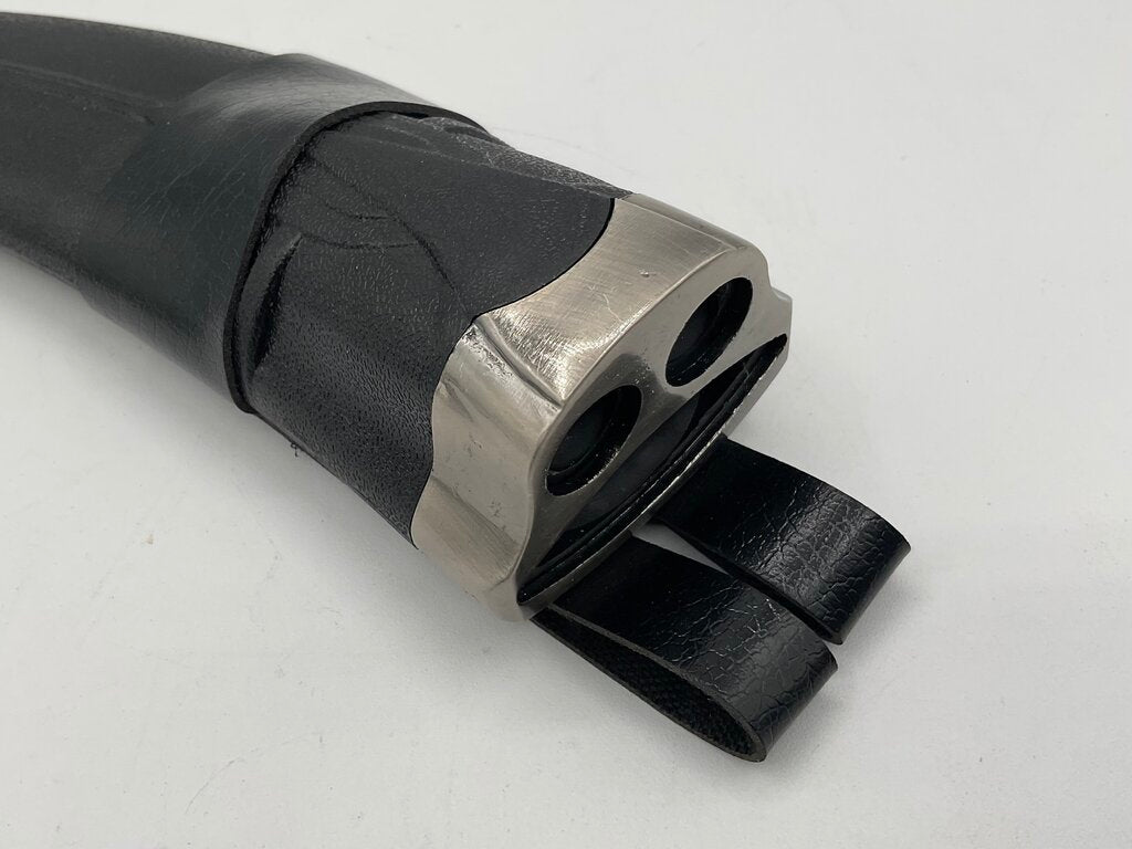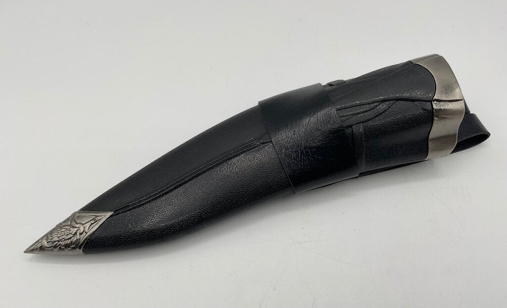 12” stainless steel Indian Gurkha kukri style hunting knife with a hard sheath and two smaller knives. This knife was made in China and is in excellent condition, no damages present. Please refer to all photos for overall condition. Item weighs 1 pound and 1.7 ounces. Estate item. Condition is pre owned. Ships USPS Ground Advantage Mail.