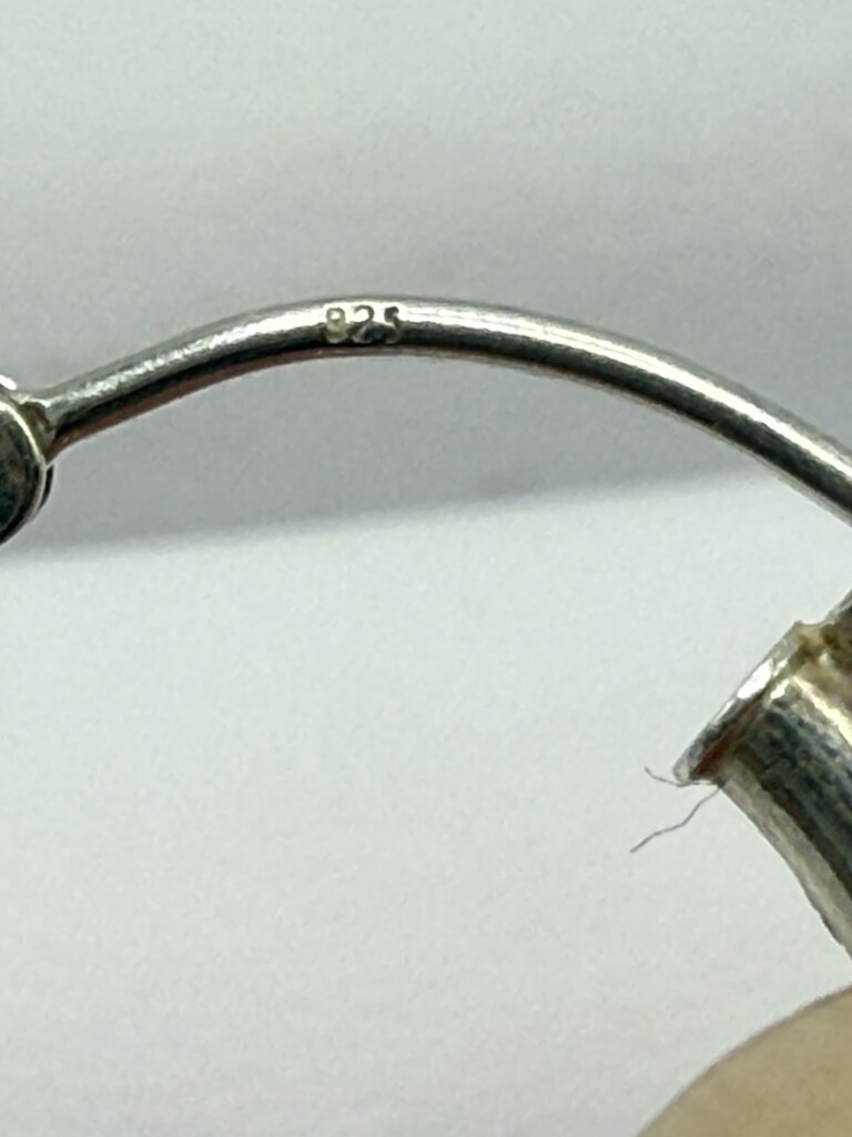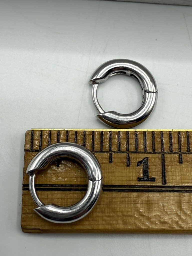 Estate set of 2 different pairs of Sterling silver Hoop earrings. The smaller pair of hoops is hinged style closure and measure 1/2” in diameter. The larger pair of hoops measures 3/4” in diameter and has a wire, click in place closure. Gram weight is 4.95 grams of sterling silver. No damage found.