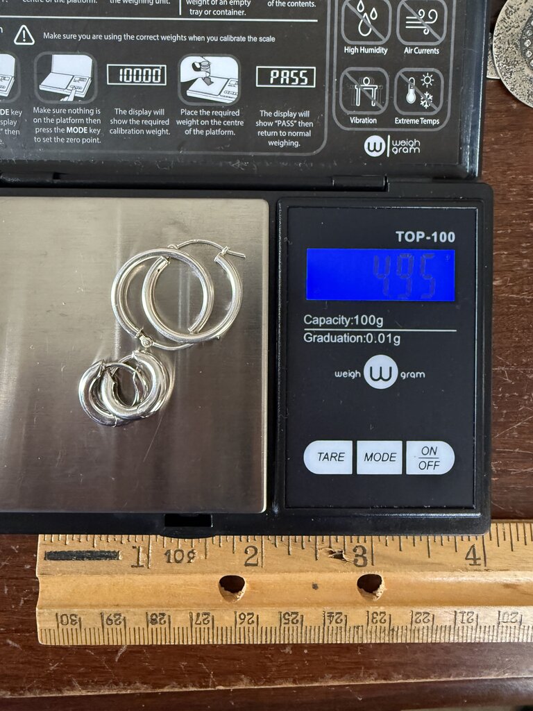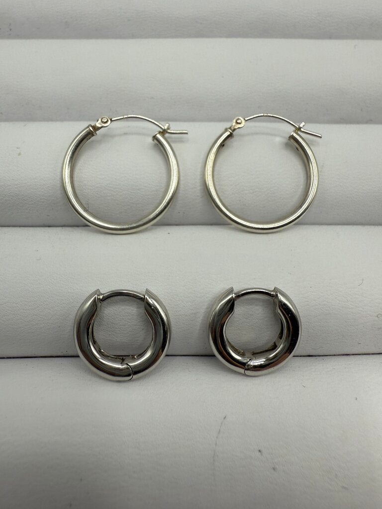 2 Pairs of Sterling Silver Hoop Pierced Earrings 4.95 Grams /ro