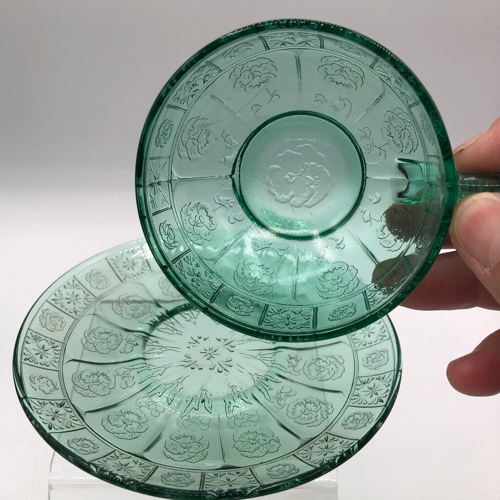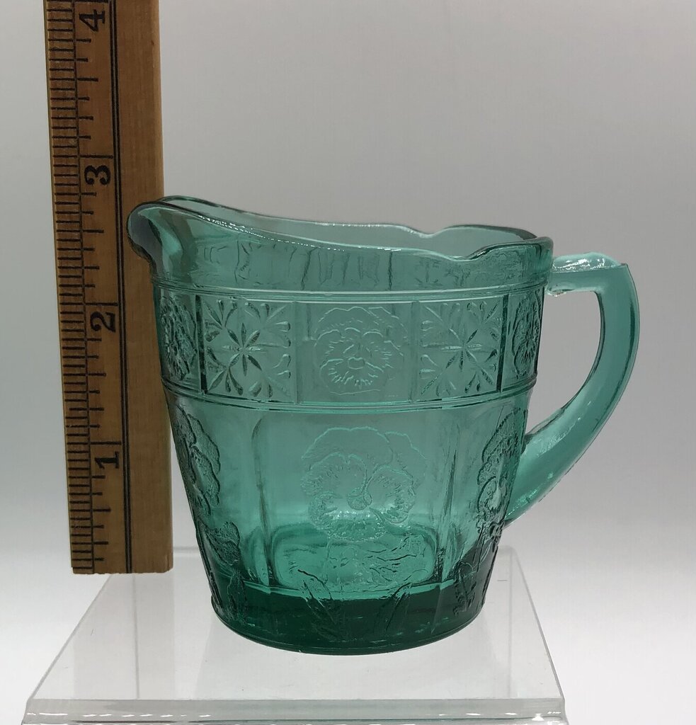 Delightful child’s Pretty Polly 6 piece set of Doric & Pansy dishes by Jeanette Glass Co.