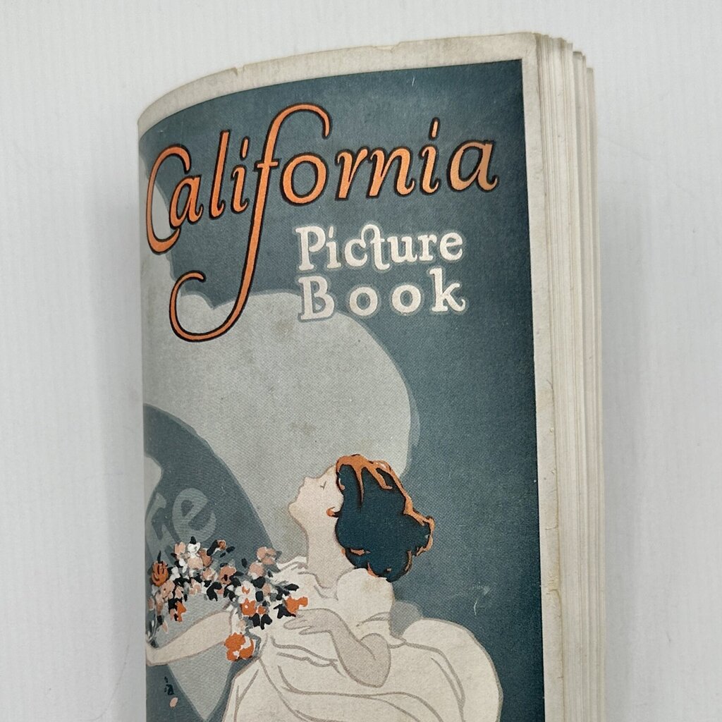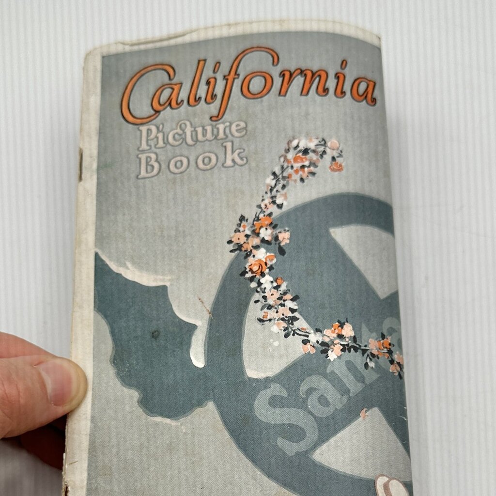 Antique Atchinson,Topeka,and Santa Fe Railway Co. travel brochure “California Picture Book” from the 1920s. This wonderful promotional brochure has 94 pages of information with wonderful photographs on each page. This is a true time capsule. This brochure was meant to be folded in half and there is a crease in the middle. It is in very good antique condition with some light wear along edges, spine and corners. The center pull out map was indeed pulled out but is included. There are no torn or missing pages. Text and photos are clean and unmarked. Measures 9 1/4” x 8”. Please carefully view all photos for condition details.