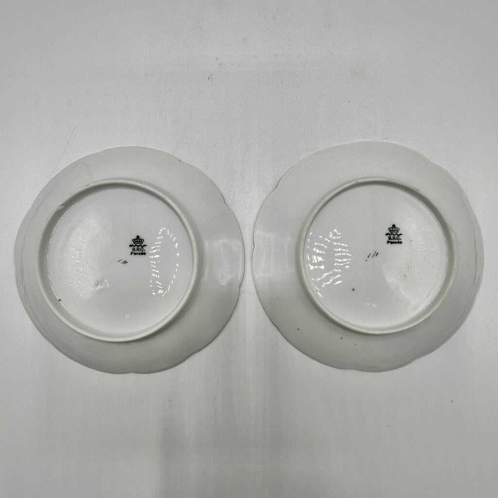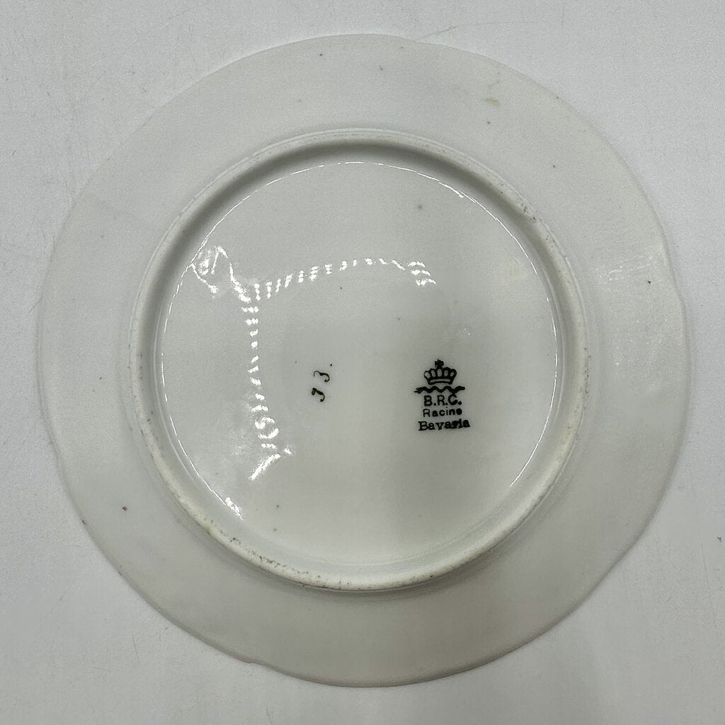 Set of 3 Antique Bauer Rosenthal & Co Floral 6” Bread Plates Pensée and Racine Shape. These lovely plates were made in Kronach, Bavaria, Germany between 1897 and 1903 during the partnership of Phillip Rosenthal and C.M.Bauer, BRC. They all have the same delicate floral pattern, but their shapes are different. Two are the Pénsee shape and one is the slightly less scalloped Racine shape. All three are in very nice antique condition, one has a tiny chip on the rim and you will find some fading and light utensil wear. They are a charming addition to an afternoon tea, can hold jewelry or trinkets on a vanity or can be classy little snack servers on movie nights. Please carefully review the photos for condition details.