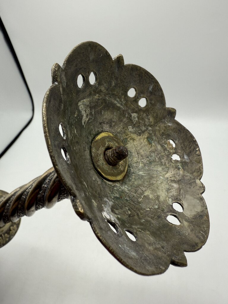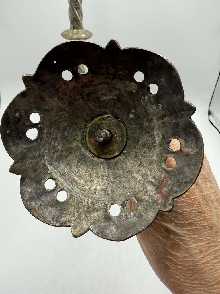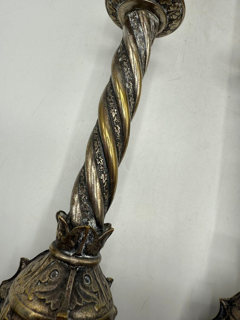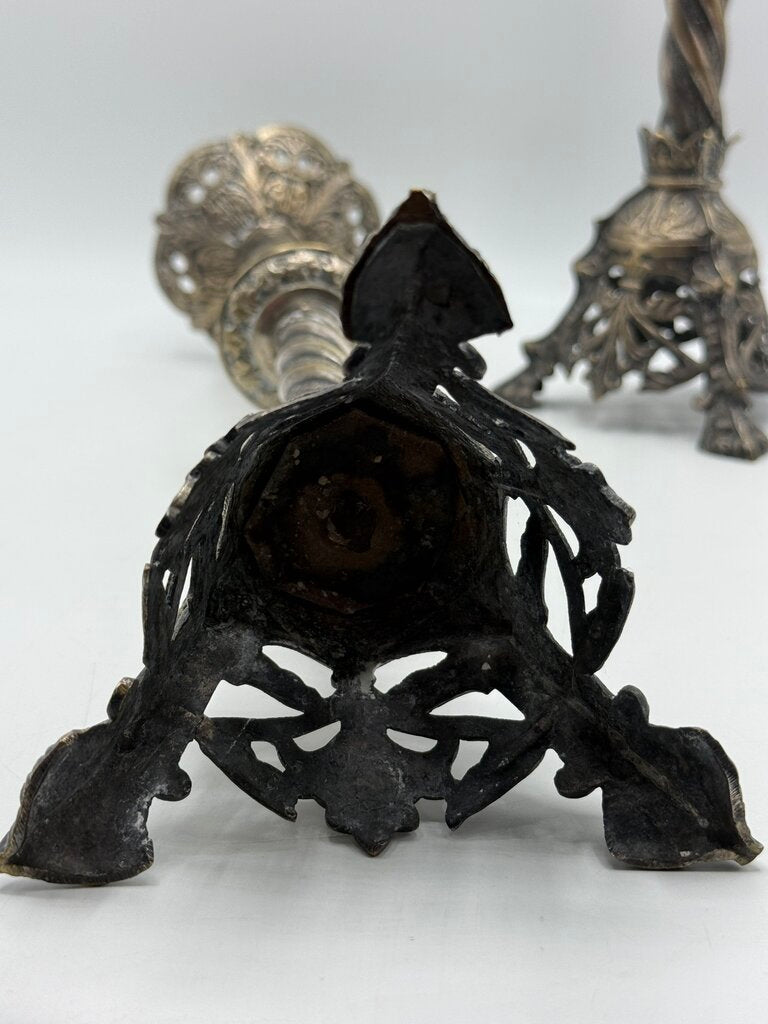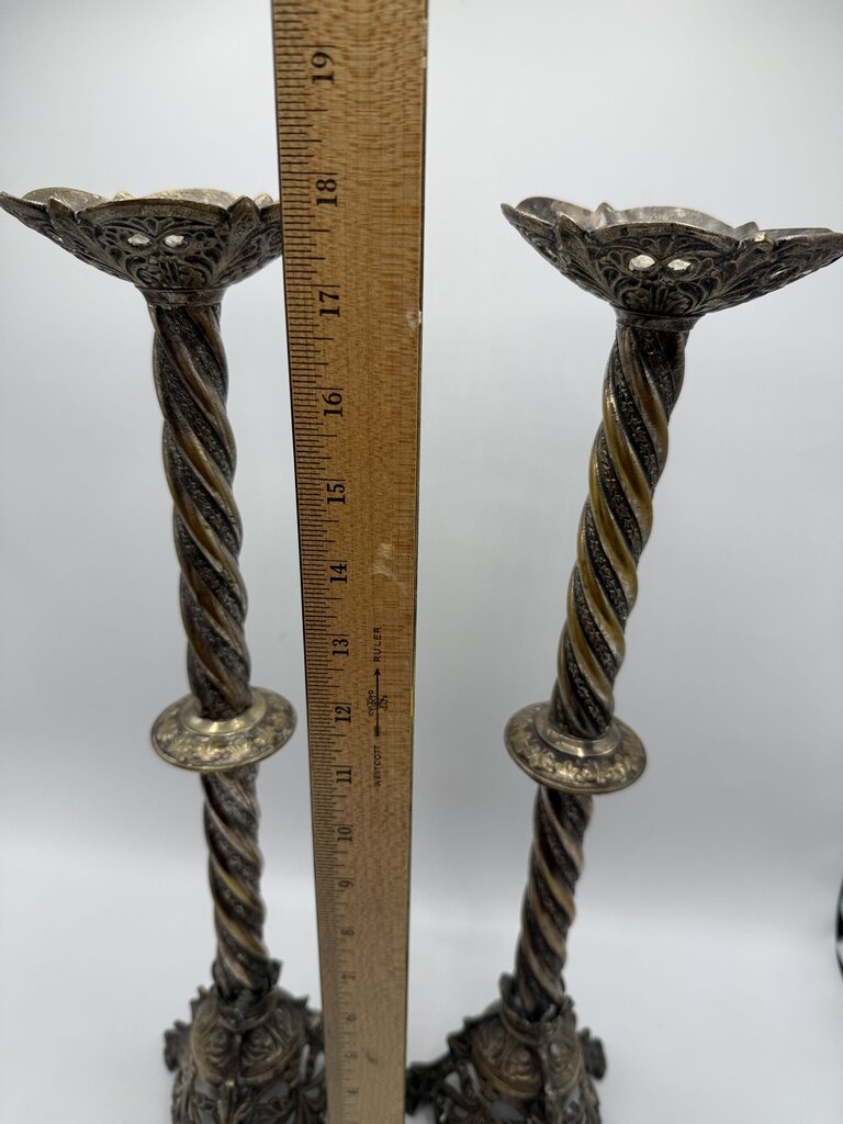 Antique Brass & Silver Plate Candlestick Holders 18” Tall /rw