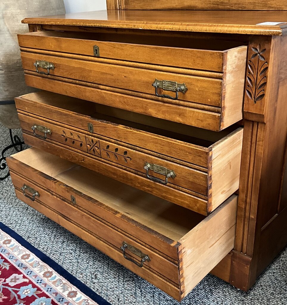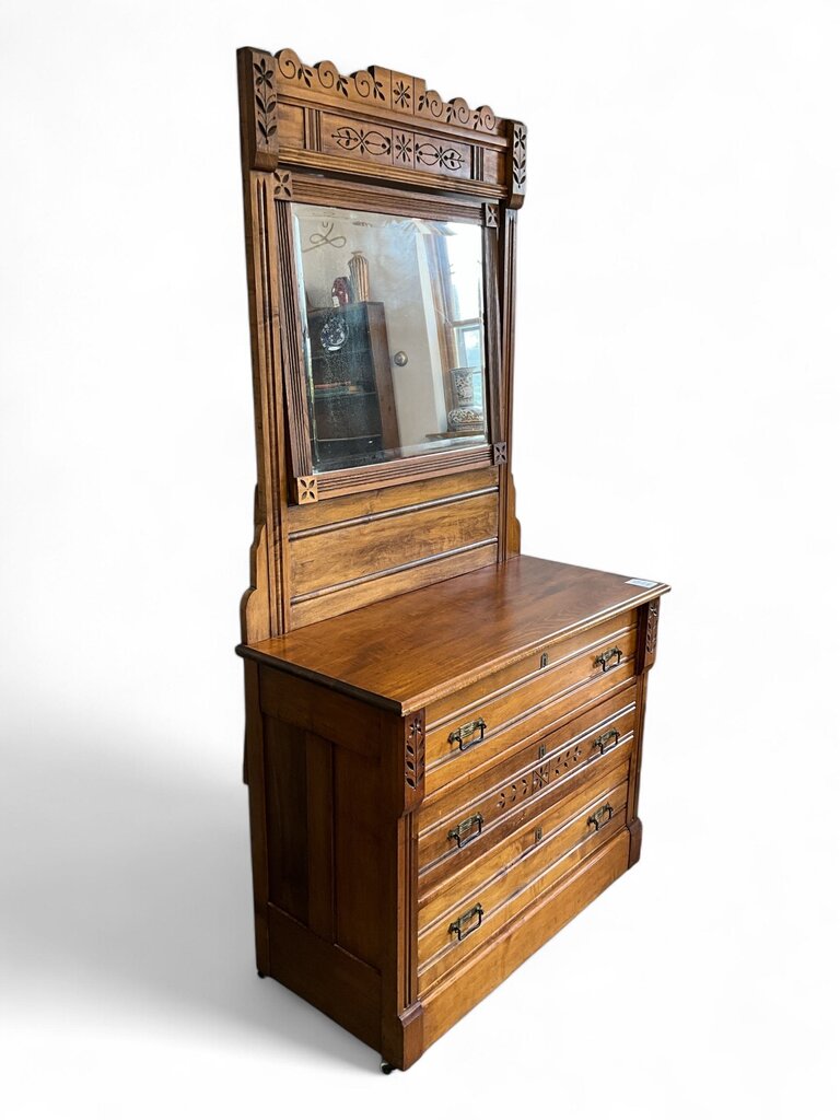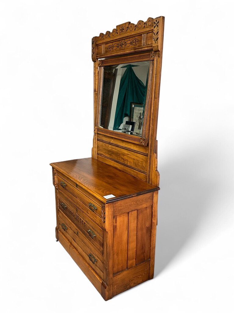 Antique Oak 3 Drawer Vanity w/ Mirror