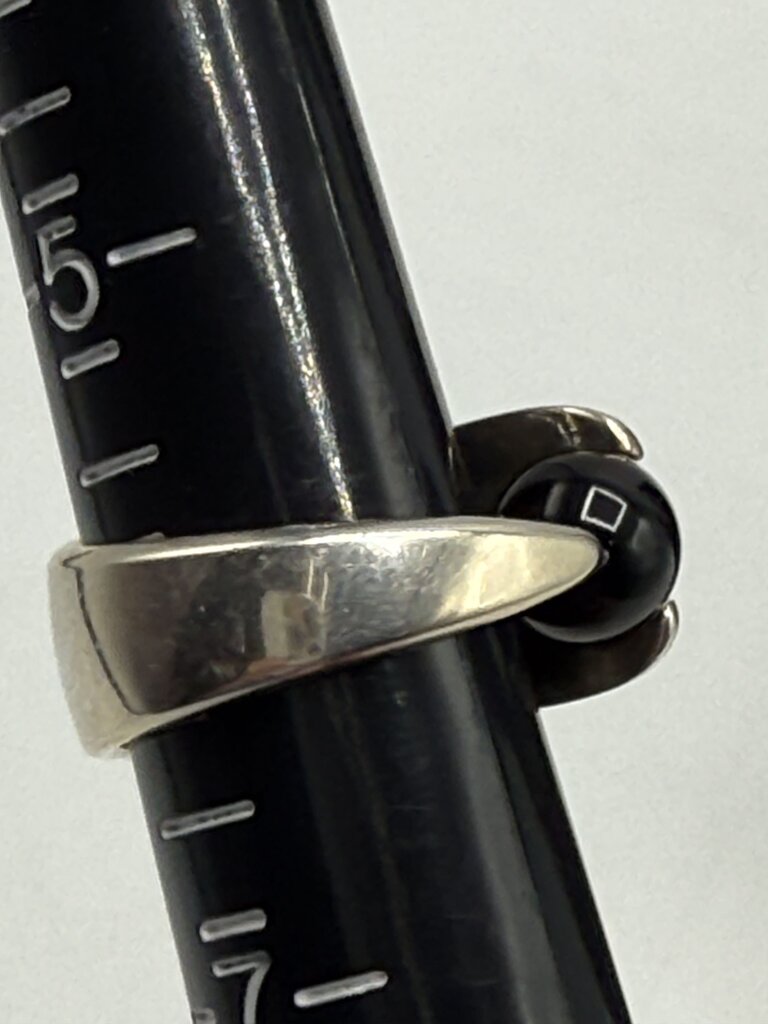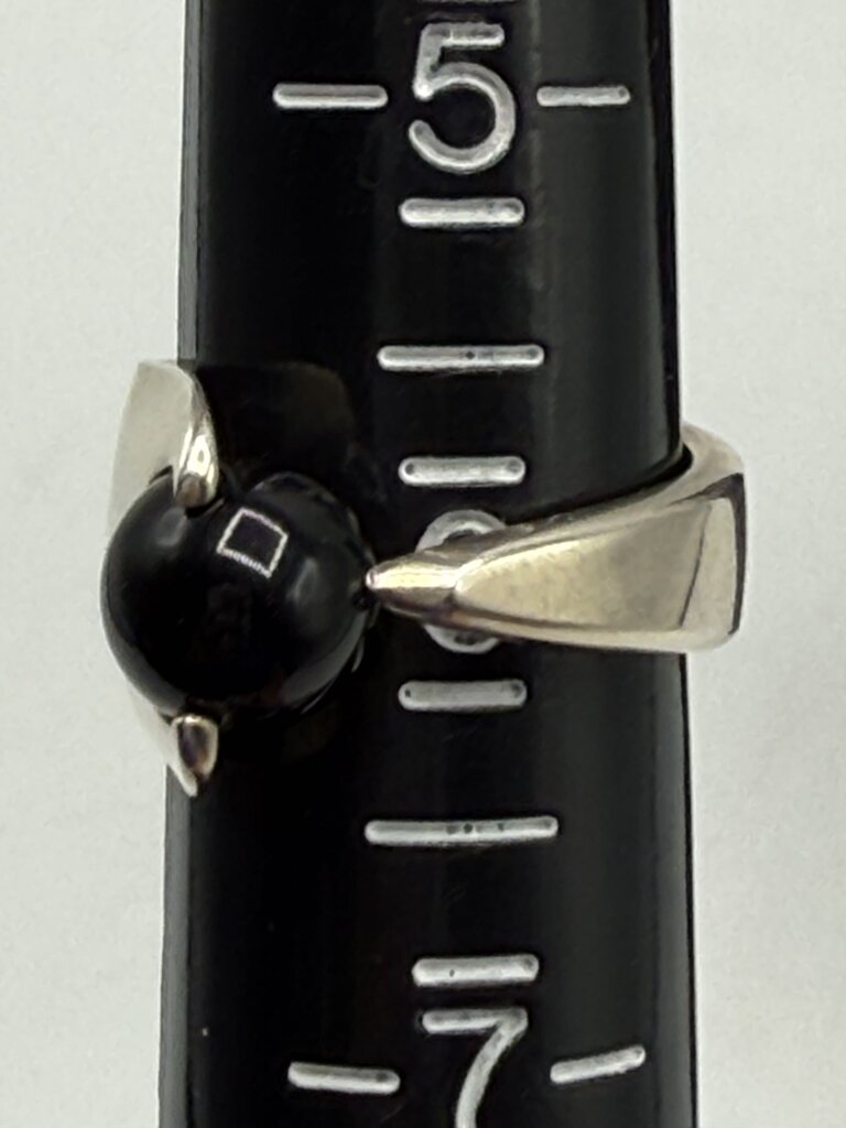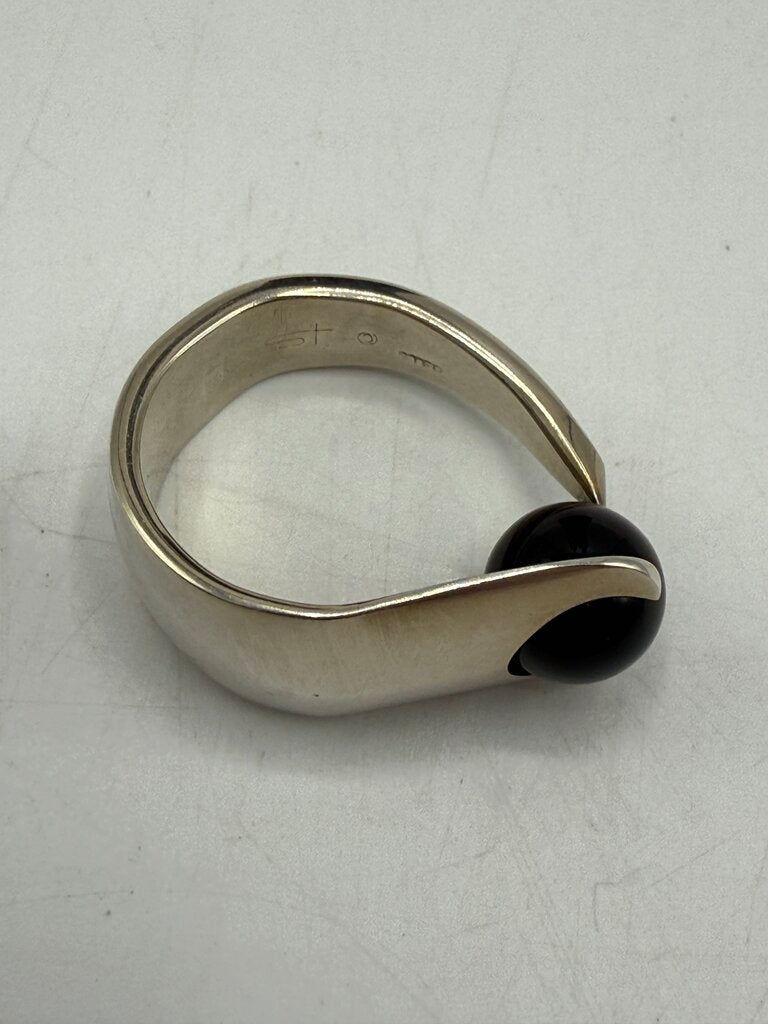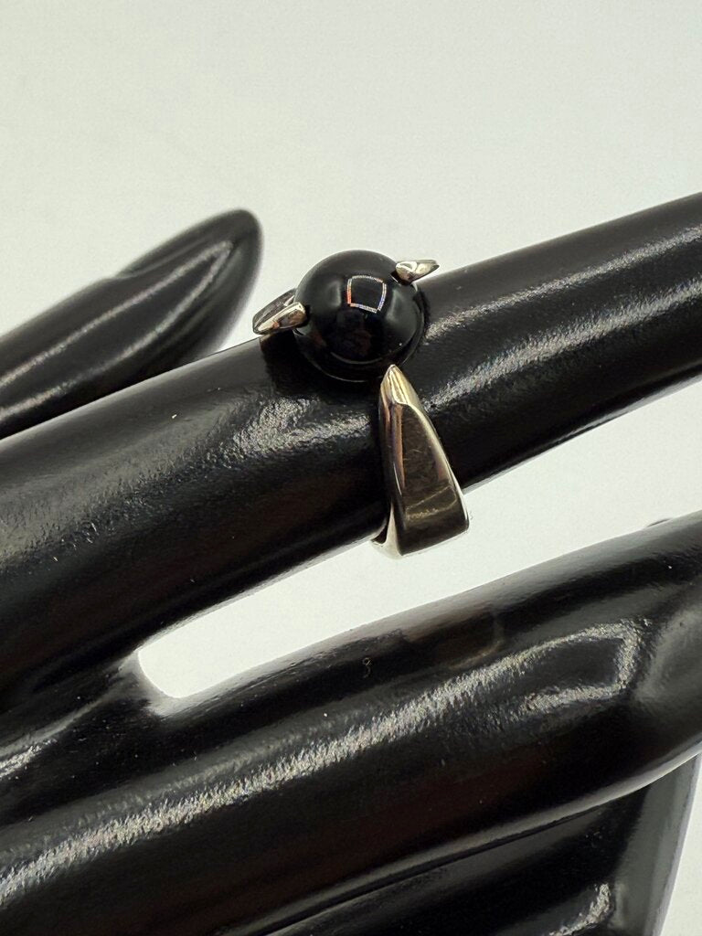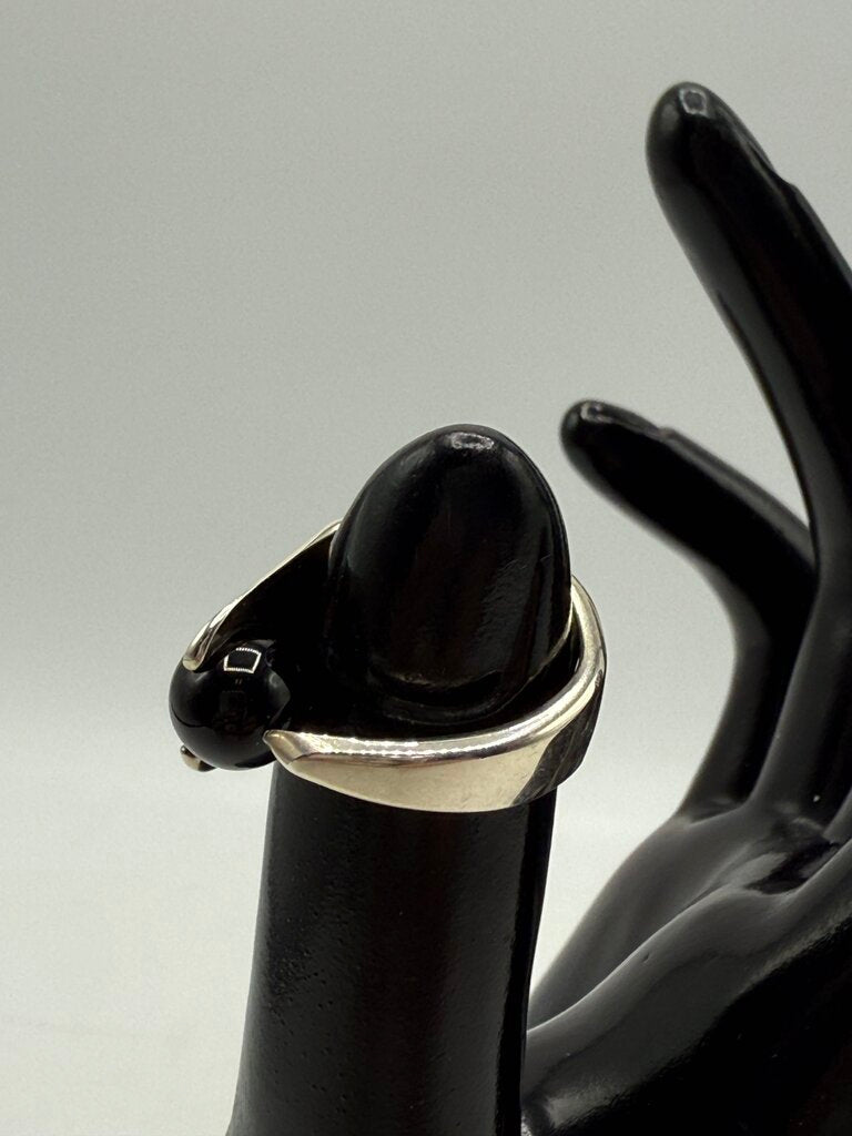 Asymmetrical Sterling Silver Black Onyx Ball Ring Size 6 /ro