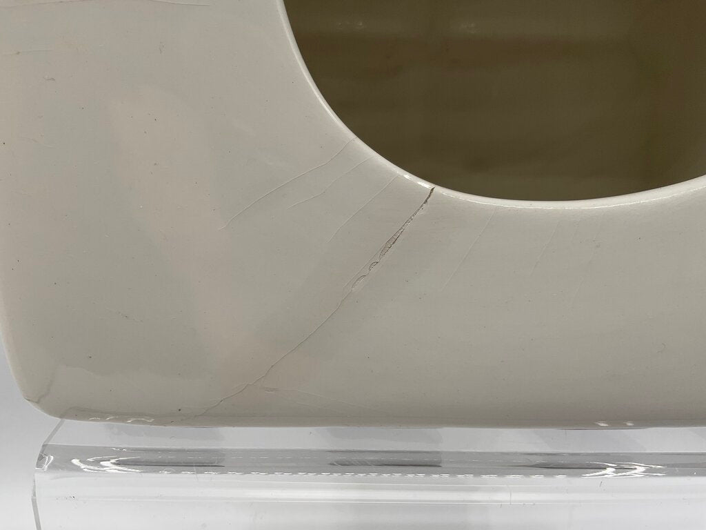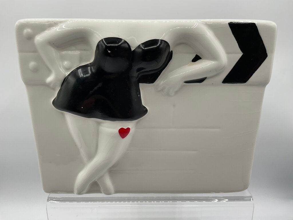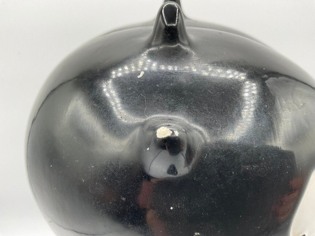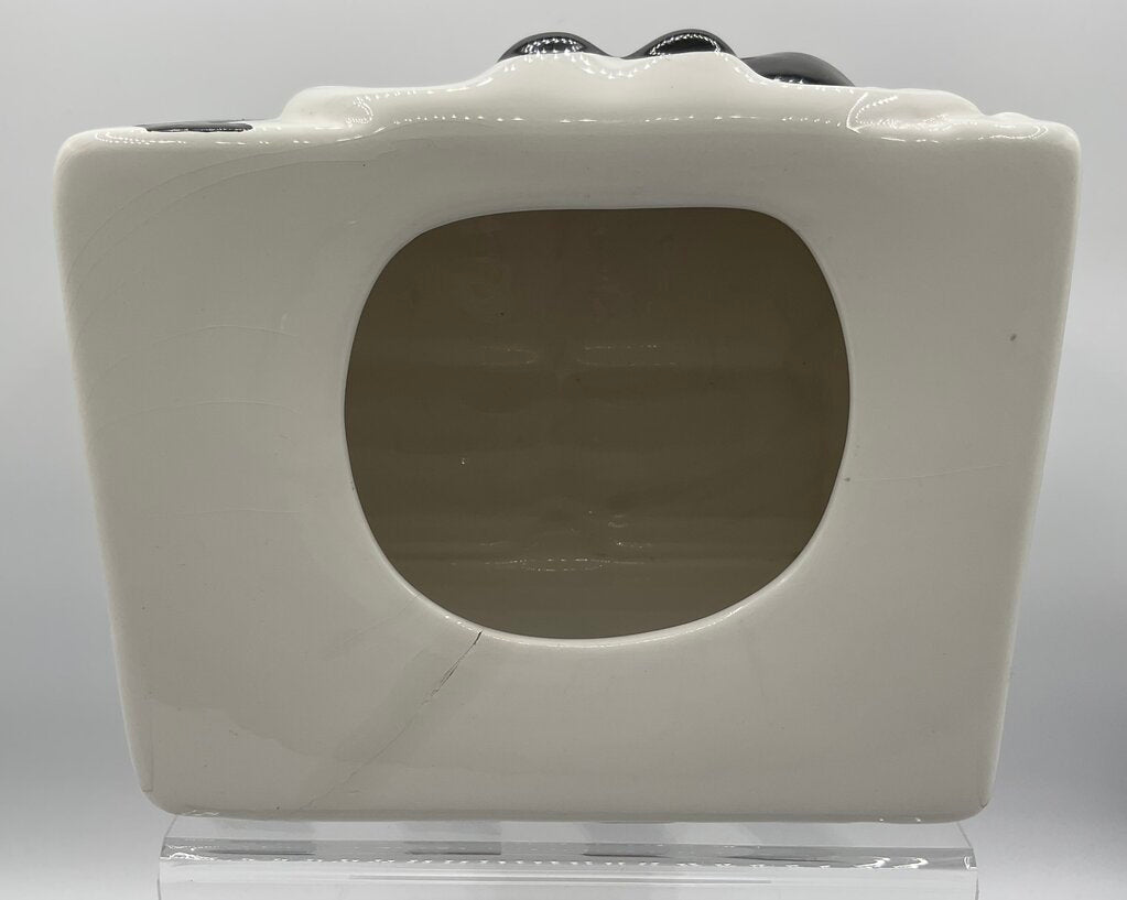 This vintage cookie jar was produced by Benjamin & Medwin in 1995 and features the body and head of cartoon character Betty Boop as a cookie jar, the body being part of the jar itself, and her head being the lid. Betty is painted in a black and white style, leaning on a classic movie clap board. This cookie jar is in overall good vintage condition. There are some blemishes throughout this piece and there is some some light chipping on the tip of one of Betty’s hairs. Please refer to all photos for overall condition. Jar weighs 3 pounds and 11.7 ounces and measures 11 3/4” tall by 6 1/2” deep by 7 1/2” wide. Estate item. Condition is pre owned. Ships USPS Ground Advantage Mail.