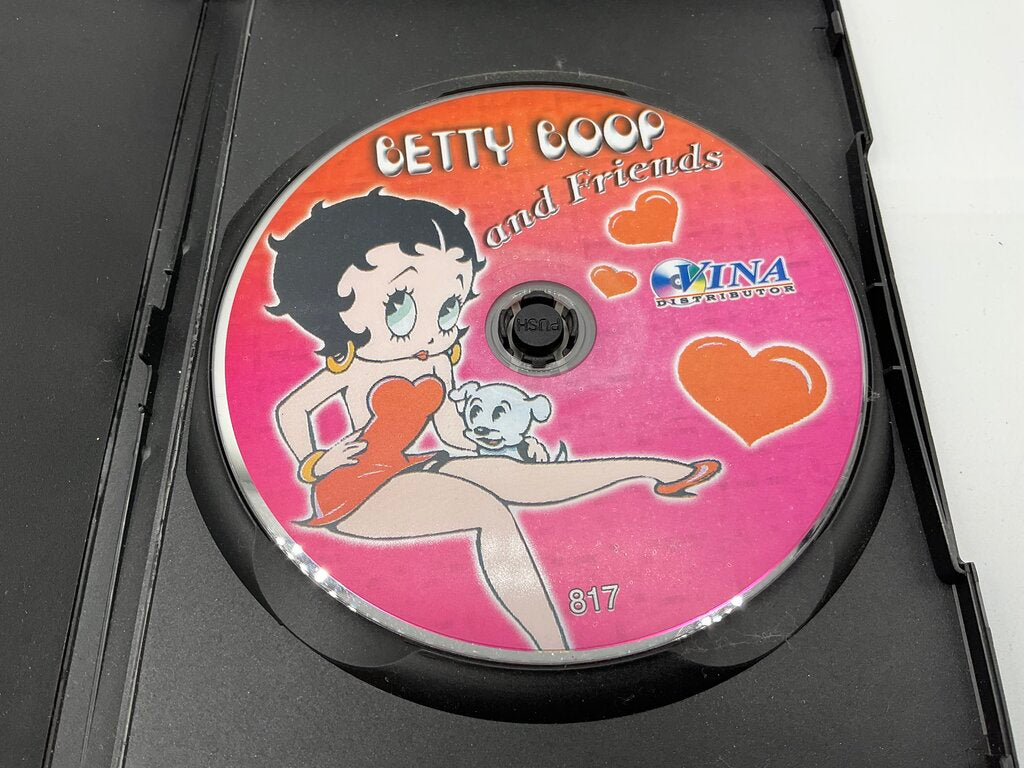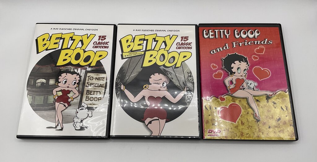 This collectible lunchbox features the classic cartoon character Betty Boop and her furry friend Pudgy on a yellow background, surrounded by stars. Inside are three DVD cases with discs containing dozens of Betty Boop cartoons. This lunchbox and all contents are in excellent condition and display like new. Please refer to all photos for overall condition. Lunchbox measures 8 1/8” by 5 7/8” by 2 7/8” and weighs 1 pounds and 6.1 ounces with all items inside. Estate item. Condition is pre owned. Ships USPS Ground Advantage Mail.