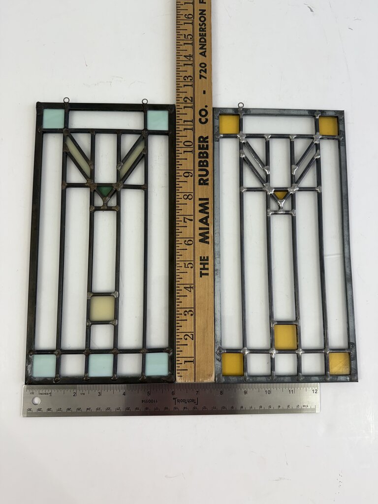 Frank Lloyd Wright Inspired Stained Glass Sun Catchers Set of 2 /roh