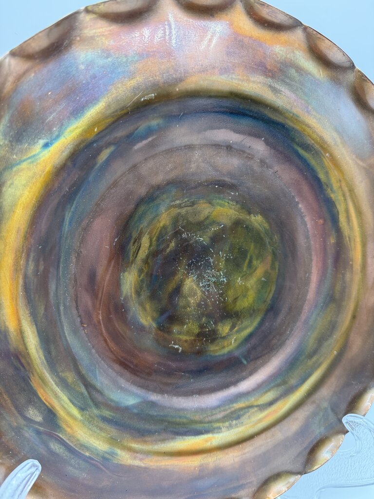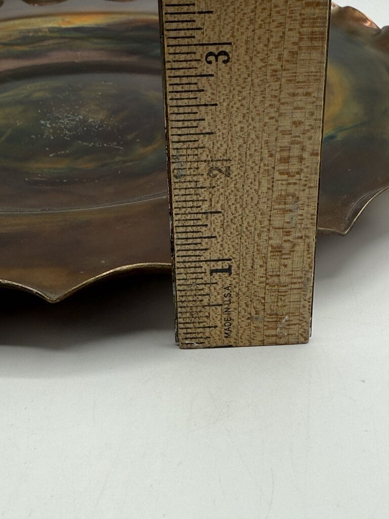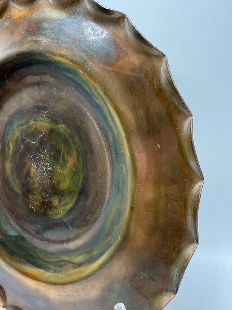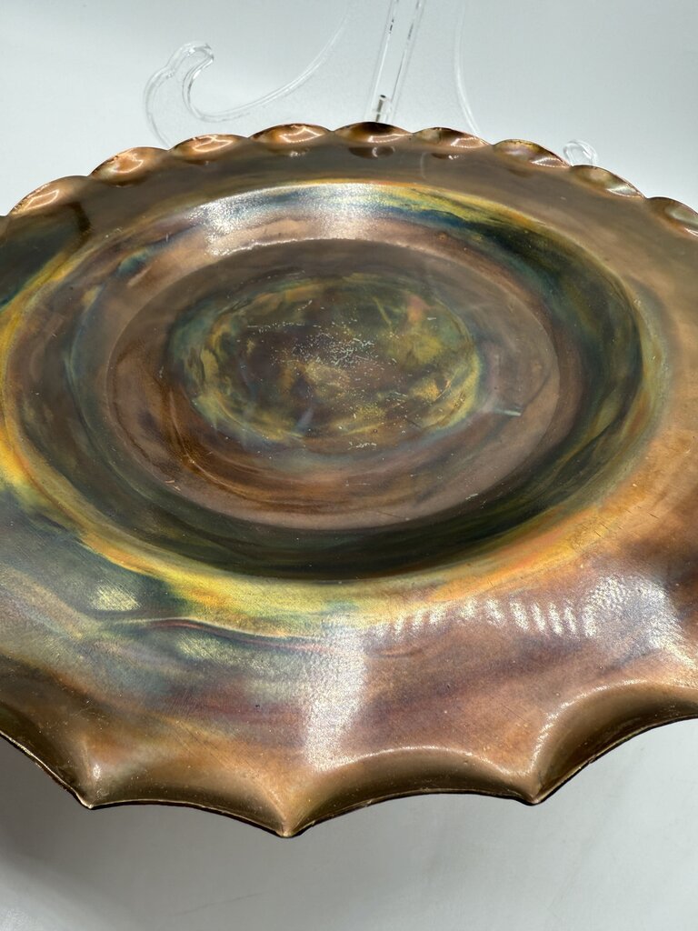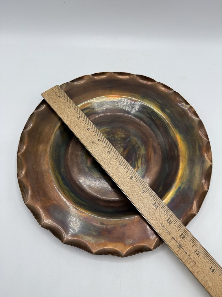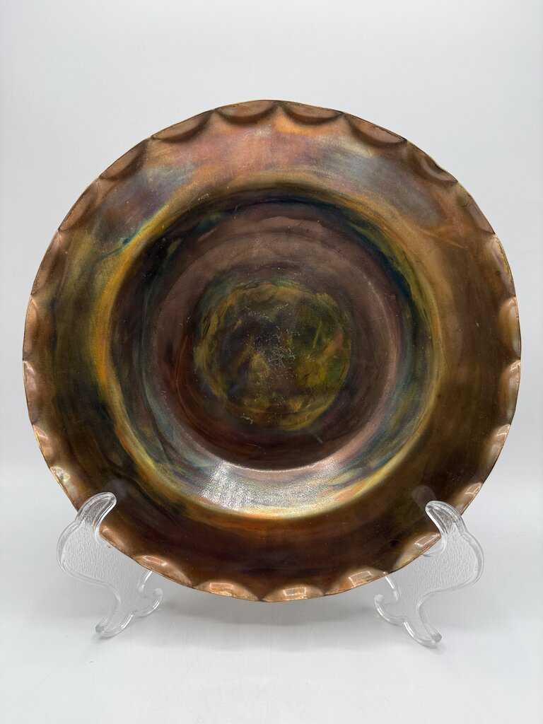 Handmade Scalloped Edge Copper Plate 12” Artist Signed /rw
