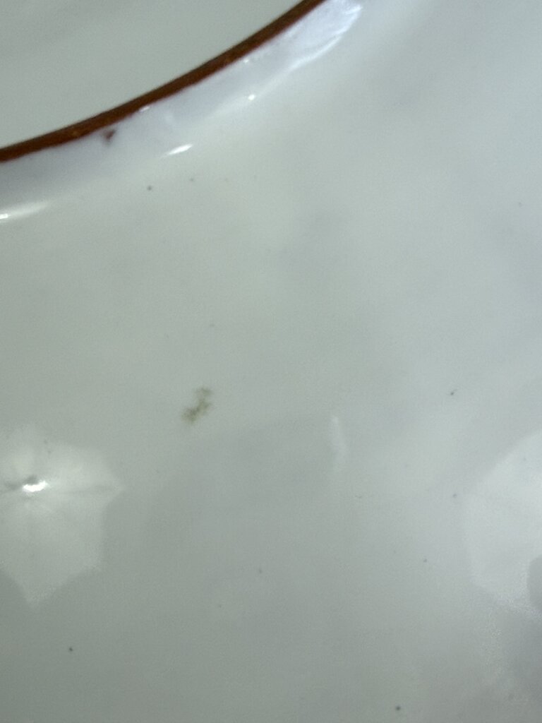 Attractive Salad Bowl Set made in Italy and handpainted. A creamy white glaze is accented with a variety of garden vegetables. Matching stoneware salad serving for and spoon with leeks. Oblong bowl measures approximately 11.25” x 8.25” and 3.25” deep. Serving fork and spoon measure 11” long, wood with stoneware handles. No chips or cracks in stoneware. Numbered on bottom.